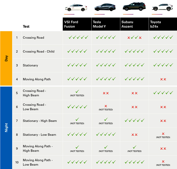 FMVSS No. 127 testing protocols have been developed to evaluate thermal imaging’s performance in various scenarios using commercially available thermally-active (heated) pedestrian dummies. Testing performed by VSI Labs in collaboration with Teledyne FLIR OEM in September 2024 showed that their research vehicle’s thermal-fused sensor suite, made up of Teledyne FLIR’s latest longwave infrared (LWIR) automotive thermal camera, an automotive radar and an automotive visible camera, successfully passed all PAEB tests. In contrast, three new 2024 vehicles with advanced PAEB systems failed two or more nighttime scenarios, and two of the vehicles even failed daytime scenarios.