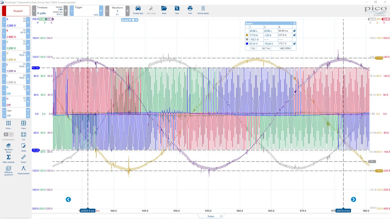 Figure 2 shows our go-to test for the power electronics, the IGBT drivers for the 3-phase power and the health of the actual motor-generators performed all at the same time. We catch all manner of electric driveability concerns using this method.