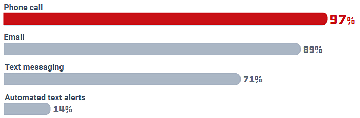 Perhaps unsurprisingly, the phone sits at 97% of repair shops who use it when they need to get in touch with customers. Email is at 89%; possibly shops may try the phone first, then follow up with email.