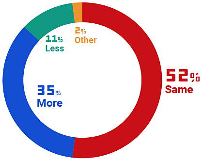This question aimed to identify what changes, if any, repair operations were seeing as fleets faced a shifting freight market. Fifty-two percent of shops are seeing the same amount of work from fleets, while 35% are seeing even more fleet approvals.