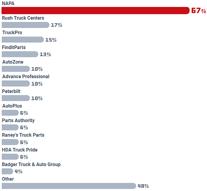 NAPA Auto Parts was by far the favorite (with 67% in favor) followed by a sharp drop to Rush Truck Centers at 17% and TruckPro at 15%.
