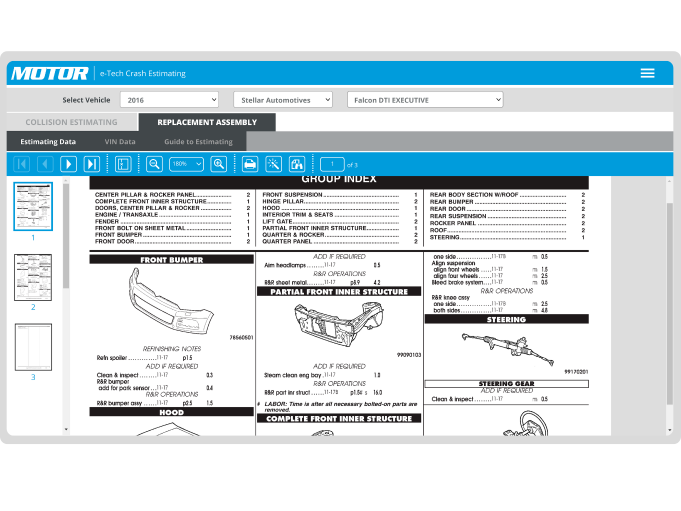 MOTOR e-Tech Crash Estimating empowers repair shops with the most accurate estimates, driving profitability and operational efficiency by providing a comprehensive view of all the components involved in collision repairs.
